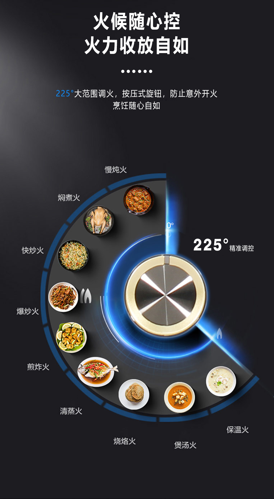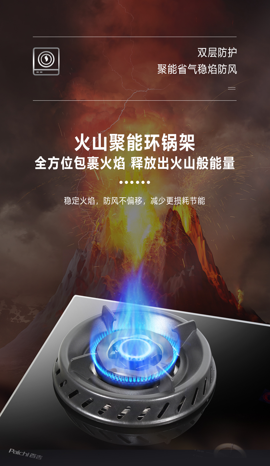 5.2kW聚能猛火灶,63%熱效率一級能效,帶熄火保護
