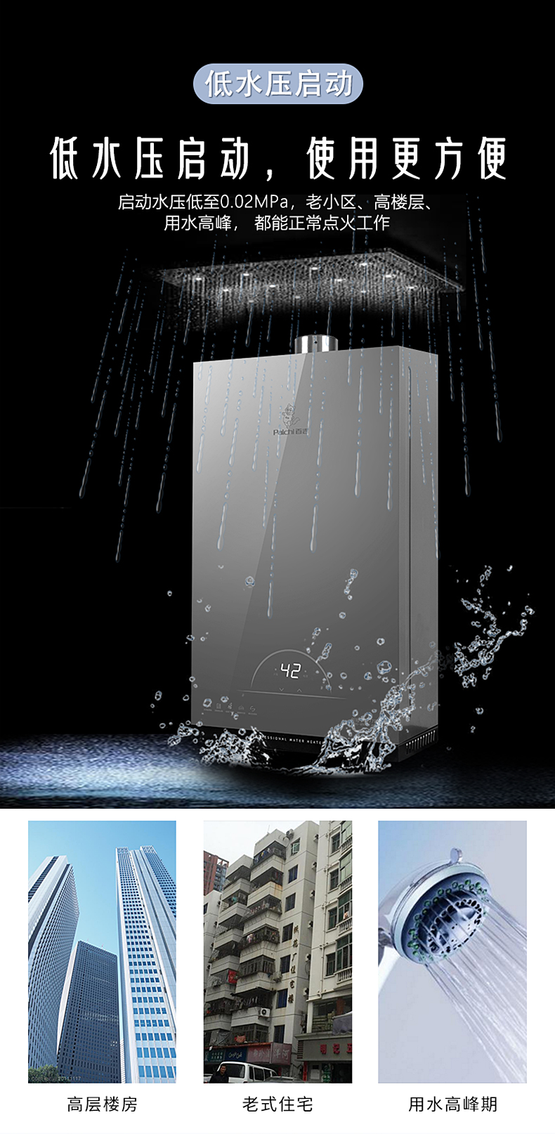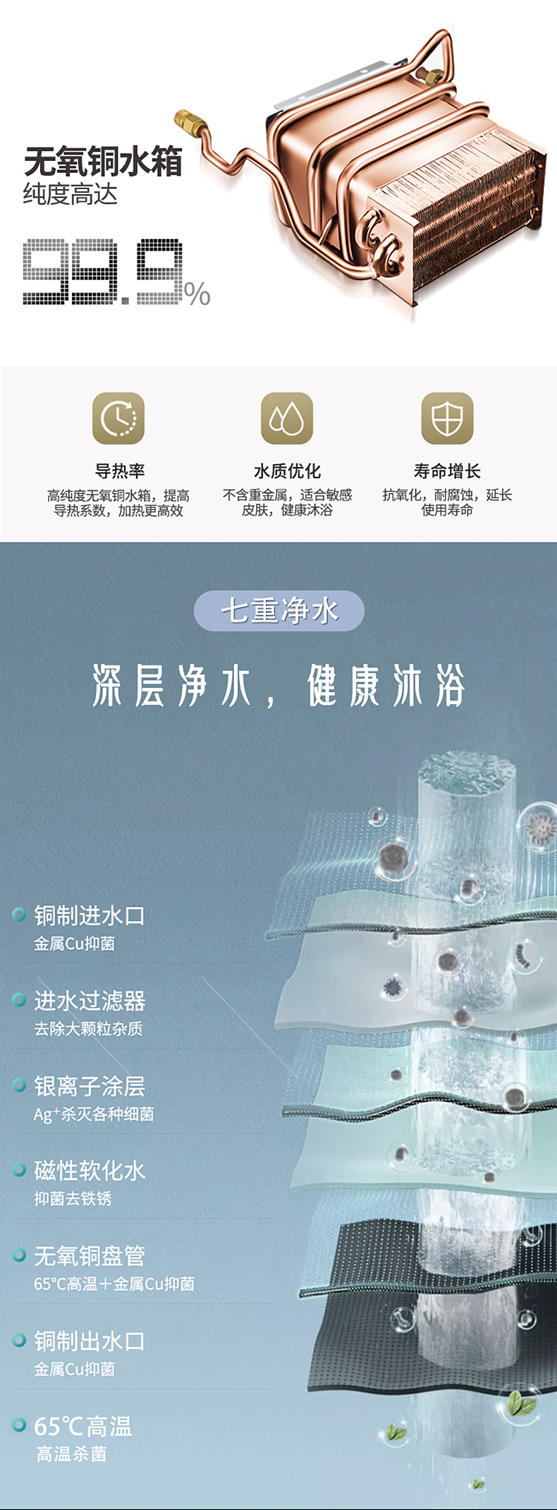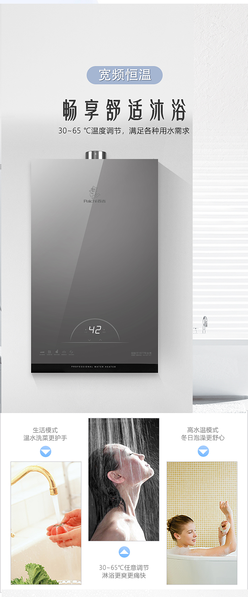 寬頻恒溫 精準控溫 四分段燃燒 無氧銅水箱 深層凈水 多維安防